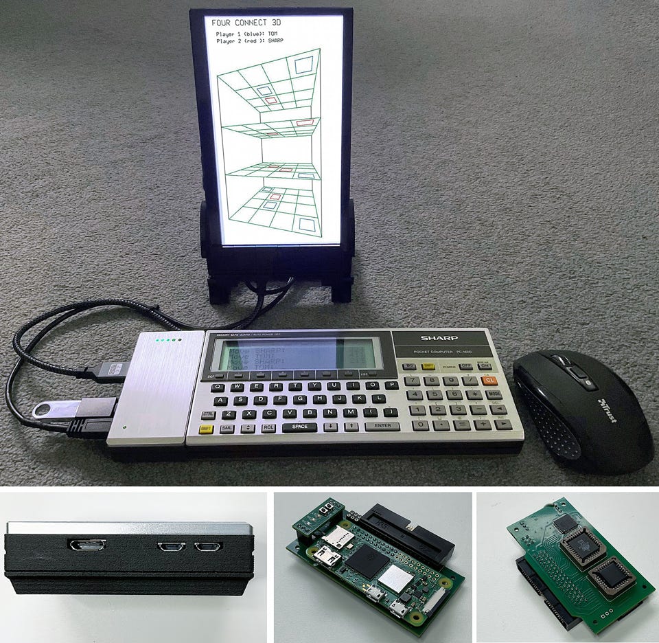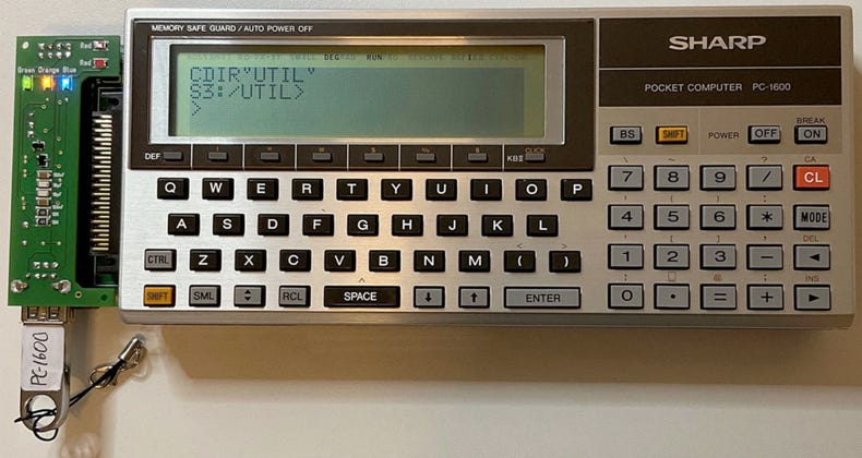 SHARP PC-1600 CE-1600P Compatible HDMI plotter, external keyboard, and